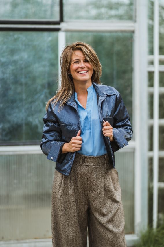 Combineer met een blouse of shirt dat je (deels) in de broek stopt om de focus af te leiden van de heup. draag met een cropped jasje zoals dit exemplaar van Imprévu om de balans te houden. Doet blauw je denken aan lang vervlogen tijden? Think twice en combineer verschillende tinten met chocolate, bruin melé of camel voor een hippe look.