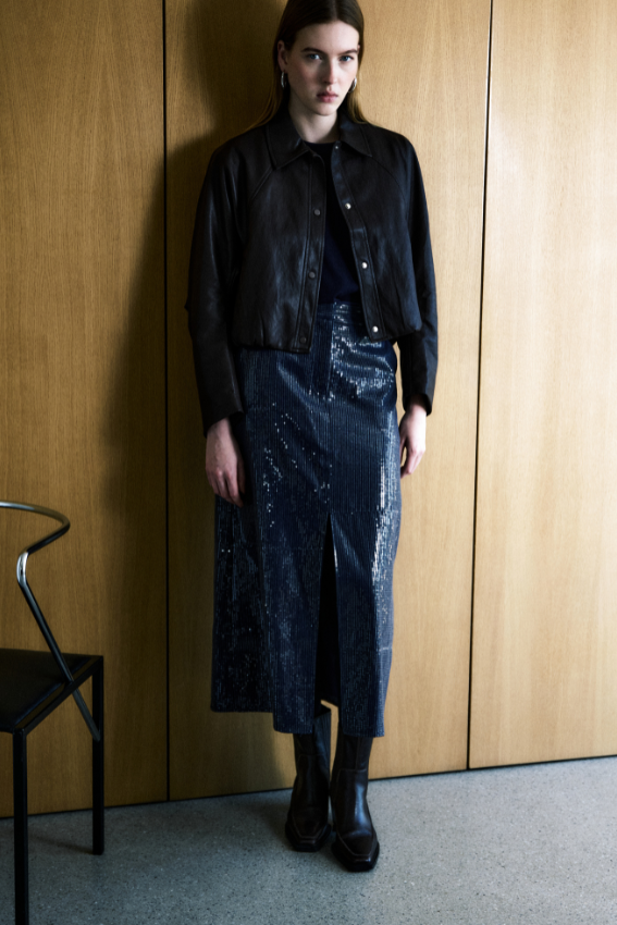 Blauwe rok met lichte A-lijn en split vooraan, voorzien van pailletten. Draag de rok voor een feestelijke gelegenheid of draag hem voor een dagje kantoor. Pimp met donkerblauw, bruin of een toffe witte blouse. Samenstelling: een mix van katoen en polyester. De voering binnenin is 100% katoen